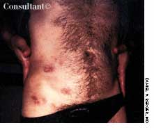 Ten days before presenting for evaluation, a 69-year-old man began to experience neuralgic pain and noticed the eruption of painful erythematous macules and papules on the right side of his chest. Within 24 to 72 hours, vesicles and pustules arose at the site. One week after onset, several of the lesions dried and crusted.