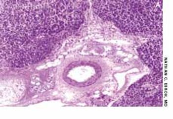 An 81-year-old woman presented with abdominal pain of 6 months’ duration, anorexia, and a 4.5-kg (10-lb) weight loss. Her history was otherwise unremarkable. She denied fever, chills, diarrhea, and vomiting. The pain was diffuse; no rebound or guarding was noted. The peripheral lymph nodes were not palpable.