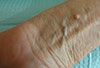 These wounds occurred when this 77-year-old woman fell when chasing her dog. Such wounds-a combination of ecchymoses and erosion caused by blunt and sheering forces on fragile skin-are common in the elderly, even after relatively mild trauma. Simple interventions will promote healing.