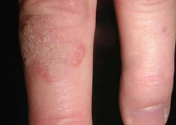 Both morphology and location favor the diagnosis of psoriasis. The presence of nail pitting, and a strongly positive family history for psoriasis, confirmed the diagnosis.