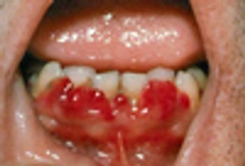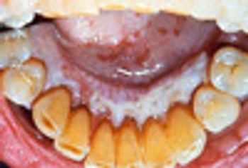 A biopsy confirmed that the white mucosal discoloration and scattered small erosions were the result of lichen planus. Eradication may be attempted with potent topical steroids or oral steroids.