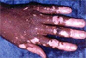 These whitish colored lesions were the result of lichen planus. Hepatitis C virus infection should be sought, since this viral infection is often associated with recent-onset lichen planus in younger persons.