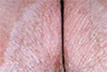 The shiny white and atrophic skin involving the vulva and perirectal skin is nearly pathognomonic for lichen sclerosus et atrophicus This inflammatory disorder of unknown etiology gradually increases in intensity.