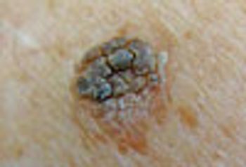 A number of clues suggest that this pigmented lesion is a seborrheic keratosis, including its rough surface, truncal location, and age of the patient (59 years).