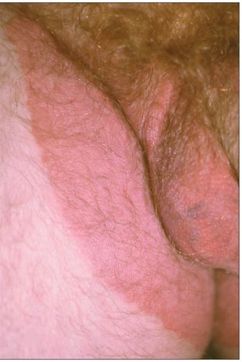 A 51-year-old man is seen because of a painful groin rash. Has not cleared despite 3 months’ topical corticosteroids and antifungals.