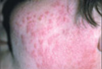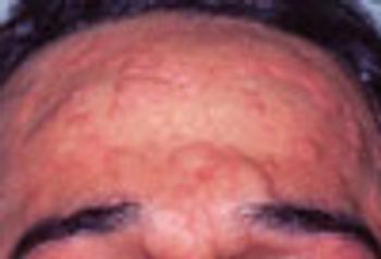 This rash on the face and neck of a 27-year-old man appeared periodically over a 2-month period. During this time, the patient’s work involved welding inside a steel oil tank. This photo was taken immediately after the patient had stopped working. He had no accompanying fever or respiratory symptoms. The urticaria was pruritic and resolved the following morning.