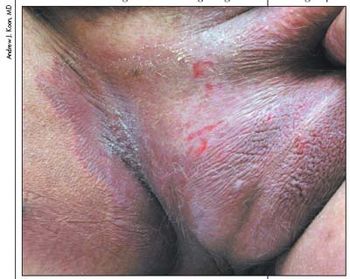 Case 4: An obese 59-year-old man presents with a chronic malodorous, itchy rash in his groin.
