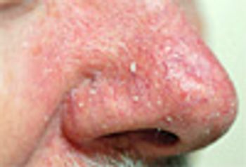 This rash on a 60-year-old man’s nose has worsened over the past few months.
