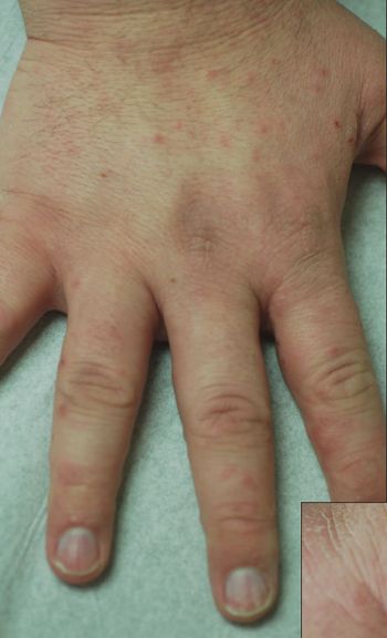 This pruritic rash developed in a 43-year-old woman who had undergone a lumpectomy and lymph node dissection for breast cancer. She completed radiation therapy and chemotherapy 3 weeks ago. The rash has been present for 5 days. Levofloxacin was started 1 day ago.