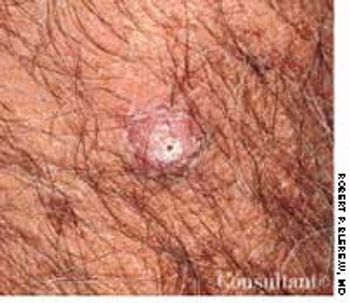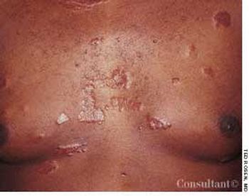 HIV infection was diagnosed in a 34-year-old man 3 years before he was hospitalized. The patient had a 2-week history of nausea; vomiting; and diffuse, intermittent, poorly localized abdominal pain. He had received radiotherapy and chemotherapy for Kaposi's sarcoma (KS) of the upper and lower extremities, which had been diagnosed 8 months earlier.