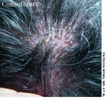 A 55-year-old woman with no significant medical history reported that diffuse erythematous, patchy, purpuric skin lesions over most of her body had been present for the past year. Applications of an over-the-counter corticosteroid cream helped control the pruritus but did not clear the skin lesions.