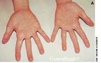 A 12-year-old boy with a history of atopy complained of pruritus and severe dryness of the hands. Over-the-counter moisturizers failed to resolve the condition. The patient did not wash his hands frequently and had no hobbies that exposed him to environmental irritants or allergens.
