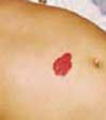 A 6-month-old girl presented with a reddish mass on the abdomen that was not apparent at birth and was first noted when the child was 1 month old. The lesion-which was asymptomatic-started to shrink and fade when the child was 3 years old. A year later, the color was very faint. When the child was 6 years old, the lesion was hardly visible.