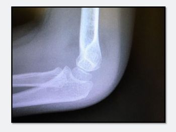 What type of injury is seen on this x-ray of a young boy's elbow? Outward signs of trauma are negligible.