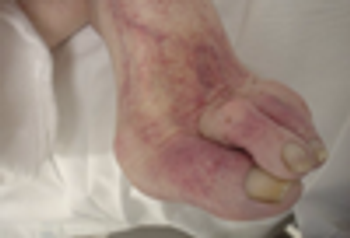 This patient had unilateral petechiae on the dorsum of the left foot. If the petechiae were symmetric, the first condition on the differential diagnosis would be thrombocytopenia. Here, though, the platelet count was normal. The patient also had a duplex of both the arterial and venous systems that showed complete thrombosis of both the arterial AND venous systems.