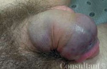 A 34-year-old man came to the emergency department after a mishap during sexual intercourse resulted in a cracking sound in his penis with immediate pain and loss of erection. He had no significant medical history. The patient was in moderate physical pain but severe emotional distress. Vital signs were normal.