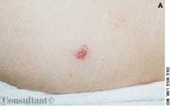 This 56-year-old man presented with a swollen face and puffy eyelids. He recently had an ear, nose, and throat evaluation for persistent hoarseness, and the findings were normal. The patient complained that he has had difficulty in lifting his head for about 4 years and was treated by a chiropractor but obtained no relief.