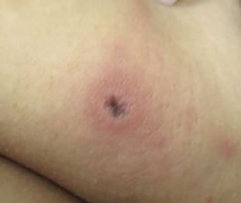 Rash began with one lesion followed by tender, disseminated eruption; fevers spiked to 102°F. Test your visual diagnostic skills.