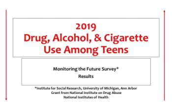 Survey Says: Use of cigarettes and alcohol is down among teens but daily marijuana use is up among 8th graders and and vaping is accelerating rapidly among 10th and 12th graders.