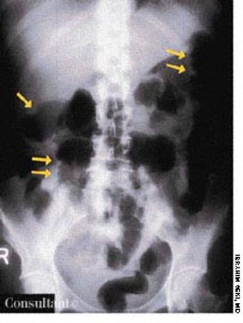 Four days after having been given cefuroxime for sinusitis, a 49-year-old woman experienced abdominal cramping, diarrhea, fever (temperature of 39.4°C [103°F]), and nausea. These problems persisted for 1 week, at which time the patient arrived at the emergency department. She had no recent history of travel, ingestion of undercooked food, or exposure to anyone with similar digestive problems.
