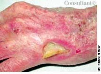 Clad only in shorts, T-shirt, and helmet, a 21-year-old man was involved in a motorcycle accident. He sustained “road rash”-diffuse multiple body abrasions, lacerations, and contusions-particularly on the extremities. Abrasions about the chest wall and abdominal region were also noted. Other injuries included a closed right clavicle shaft fracture and a nondisplaced open fracture of the dorsal aspect of the right olecranon.