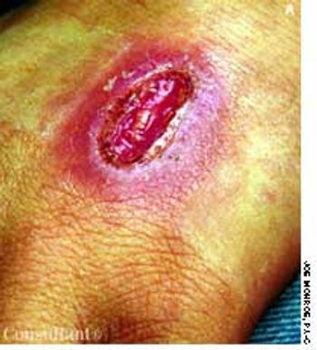 A 6-year-old African American boy is referred for evaluation of “cellulitis,” which had persisted for several weeks. The condition had failed to respond to oral antibiotics prescribed by another practitioner.