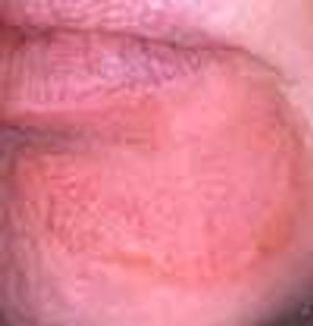 A 10-year-old girl complained of slight fatigue and malaise. A 6-mm tense blister had developed on the dorsum of her right foot, lesions had arisen on the palms, and a pinpoint, whitish ulcer had erupted anterior to the frenular attachment.