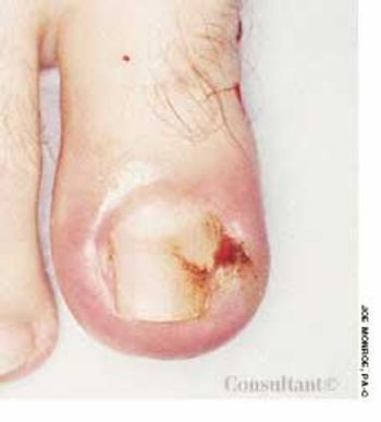 A 15-year-old experienced pain in her toe, particularly when pressure was applied to the foot. An ingrown toenail was the cause of her discomfort.
