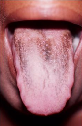 After a “swig” of Kaopectate, this patient noticed tongue discoloration. Is this coincidental, or is there a clinical connection?