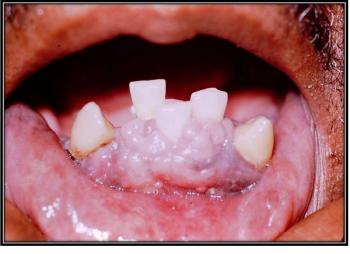 What is in your differential diagnosis for this lesion observed in the mouth of a 52-year-old man?