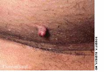 A 3-mm long, double-tipped, polypoid lesion appeared just anterior to the anus on an 8-month-old girl 2 days earlier. The lesion was excised in the office: a local anesthetic was administered, and the base was lightly electrodesiccated. Antibiotic ointment was applied until the area healed. Pathologic findings identified an infantile perianal pyramidal protrusion.