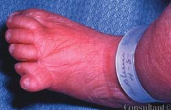 This 2-day-old infant was noted by Robert P. Blereau, MD, of Morgan City, La, to have duplication of the fifth toe with webbing between the two toes to the distal interphalangeal joint. There was a family history of polydactyly on the paternal side and syndactyly on the maternal side.