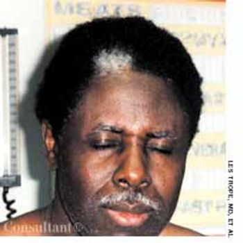 A painless swelling on the dorsum of the scalp had been present for many years in a 36-year-old man. An increase in the size of the lesion prompted the man to seek medical evaluation.
