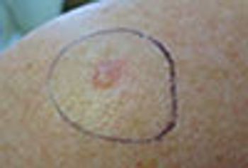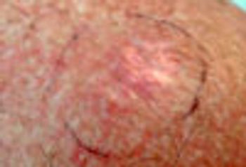 Biopsy of the flat area of this erythematous patch revealed superficial basal cell carcinoma while biopsy of the more nodular component revealed deeply infiltrating basal cell carcinoma.