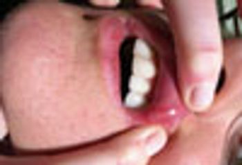 The shallow ulceration surrounded by a ring of erythema is characteristic for aphthous ulcers (canker sores). This patient’s otherwise negative history rules out Behcet’s disease.