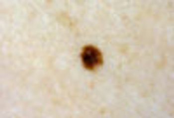 Eccentric and irregular pigmentation prompted a biopsy in this elderly woman with a history of basal cell carcinoma and melanoma. The surprising diagnosis was a heavily pigmented squamous cell carcinoma in situ.