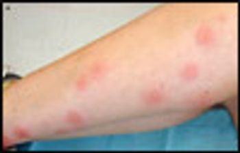 Intensely pruritic lesions of acute onset are evident on the legs of a 24-year-old woman who had no history of similar episodes. She was in excellent health and took no medications. She had spent the previous evening seated outdoors at a restaurant.
