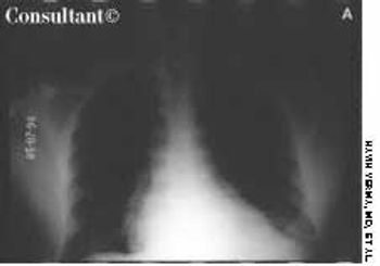 For the past year, a 45-year-old man experienced dull, aching chest pain and breathlessness following routine work. He had no history of fever, cough, dysphagia, or change in voice.