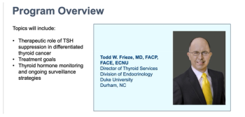 Todd W. Frieze, MD, discusses the therapeutic role of TSH suppression in differentiated thyroid cancer, as well as treatment goals and ongoing surveillance strategies.