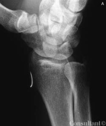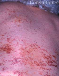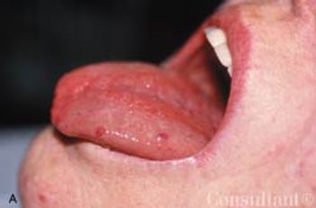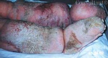 An obese 55-year-old woman had intermittent dysuria and frequent urination for 4 days and fever, abdominal pain, and vomiting for 3 days. Her history included type 1 diabetes mellitus, hypertension, and angina; her medications included insulin, nifedipine, and nitroglycerin.