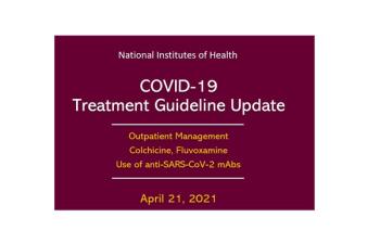 The April 21st updates include guidance on use of colchicine, when to use combination anti-SARS-CoV-2 monoclonal antibodies, COVID-19 reinfection, and "long COVID."