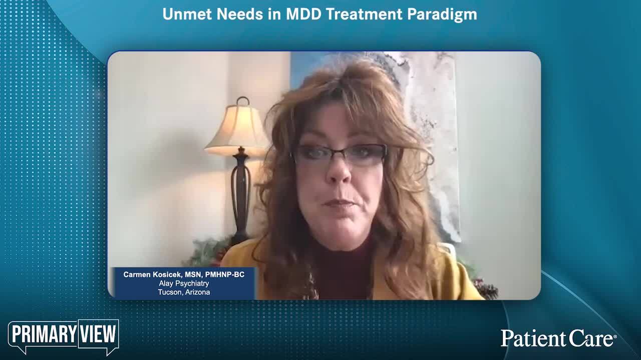 Carmen Kosicek, MSN, PMHNP-BC, leads a discussion on the level of satisfaction for both patients and providers with currently available MDD treatment options, barriers to access, and the impact of residual symptoms on a patient’s quality of life.