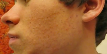 This woman was snowboarding over a very cold weekend and developed a pustular rash at night after her activities.