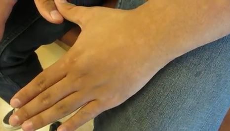 The key diagnostic clue: it looks like she tried to wipe grease off her hands, but didn’t succeed.