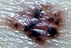 A multiplicity of colors in a pigmented lesion usually dictates the need for a biopsy. In this woman with many nevi and a history of malignant melanoma, biopsy revealed an inflamed blue nevus and was also curative.