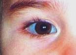 Contact dermatitis to paste-on fingernail decorations developed when the patient held her lower eyelid down with her index finger to insert her contact lenses.