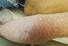 Prominent, pigmented polyangular scales on the extensor surfaces of the arms, legs, and trunk suggested recessive X-linked ichthyosis. DNA analysis demonstrated an abnormal steroid sulfatase gene, which confirmed the diagnosis.