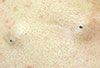 This pigmented macule clearly stands out against a bland background of fair-complected skin. This is known as the “ugly duckling” sign. Such lesions should always be viewed with suspicion and a biopsy is generally indicated.