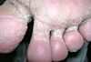 The fairly well-defined erythematous plaques covered with silvery scale are typical for psoriasis. In some patients, the disorder may be limited to the genital skin.