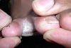 These whitish colored lesions were the result of lichen planus. Hepatitis C virus infection should be sought, since this viral infection is often associated with recent-onset lichen planus in younger persons.